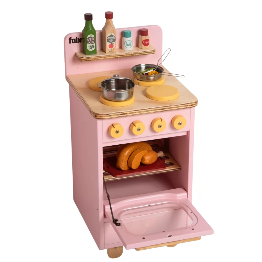 Fogão Infantil de Madeira Rosa Claro - Fabrink