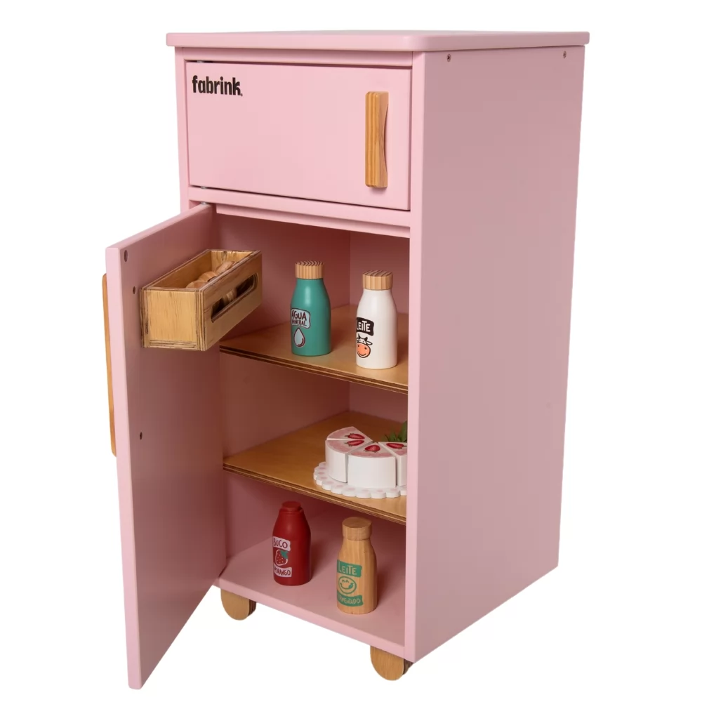 Geladeira Infantil Rosa de Madeira Fabrink - Cozinha Criativa