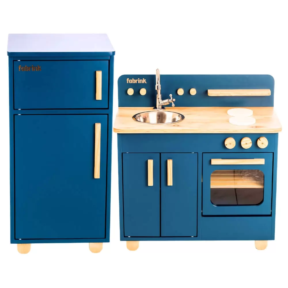 Com um design exclusivo, o jogo de cozinha completo FABRINKprojetado em madeira para brincadeiras que estimulem a criatividade eautonomia de cada criança.