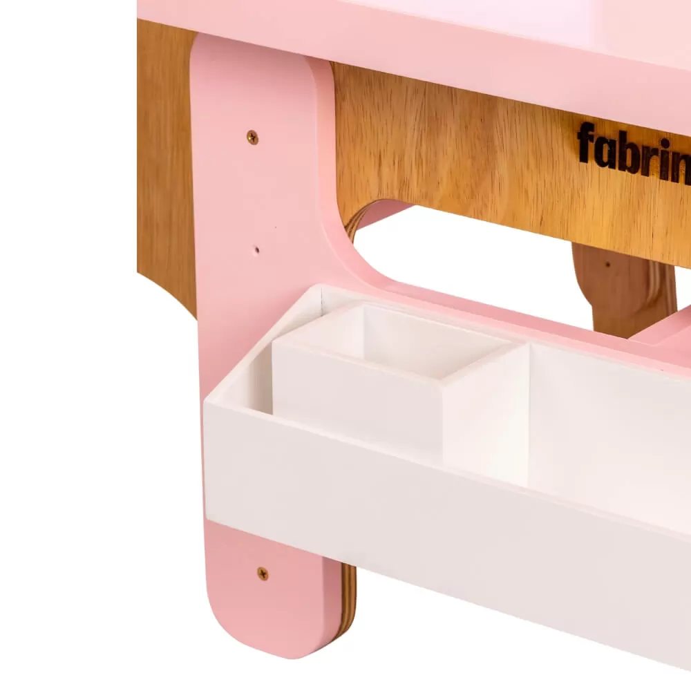 Descrição Contém 01 (UM) mesa com regulagem dealtura. Materiais: Compensado Naval e MDF. Obs. Não acompanha cadeiras!