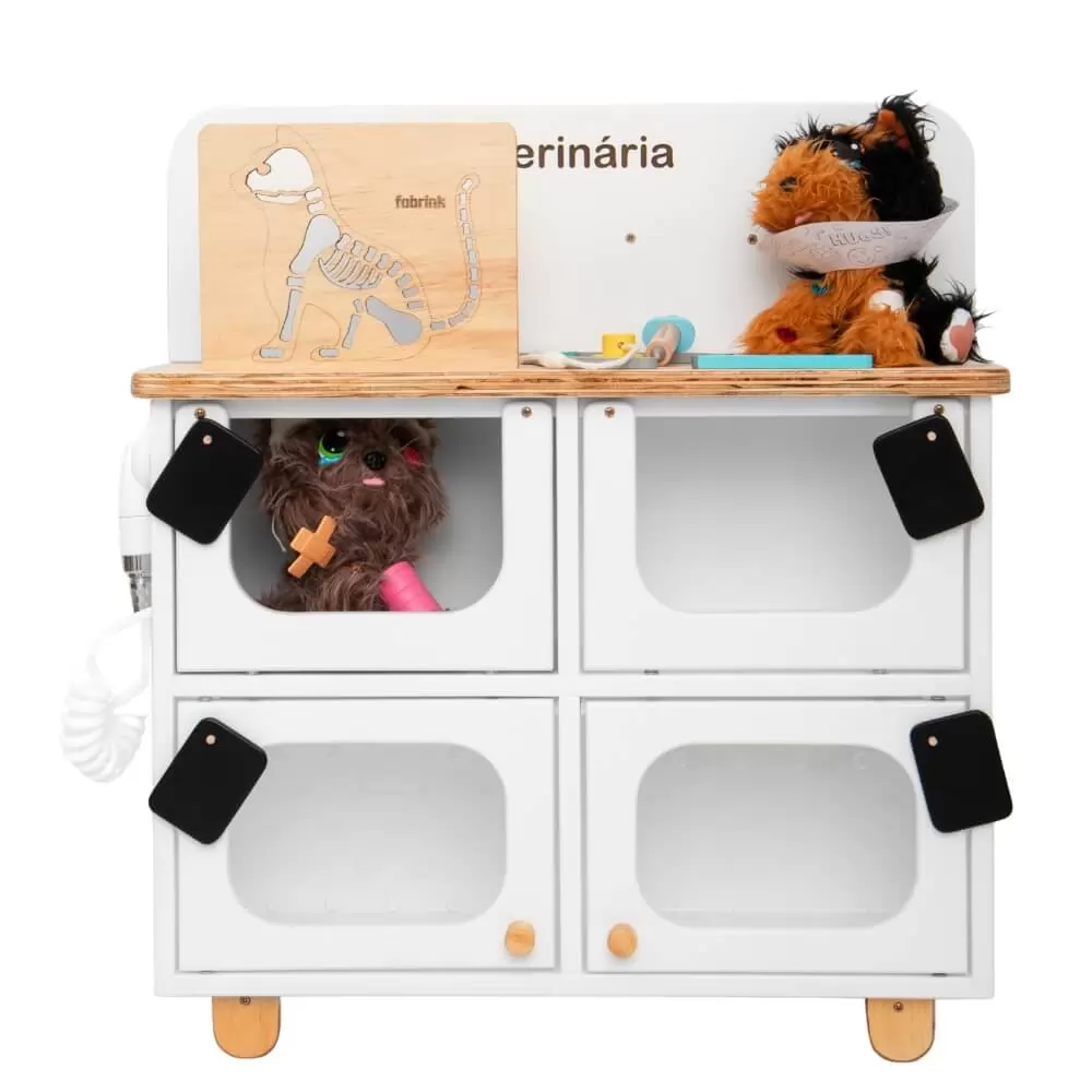 O Pet Shop Branco Fabrink transforma brincadeiras em lições de amor aos animais! Um espaço 2-em-1 (Pet Shop + Clínica Veterinária) que estimula empatia e criatividade.