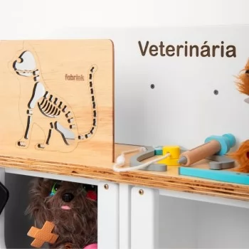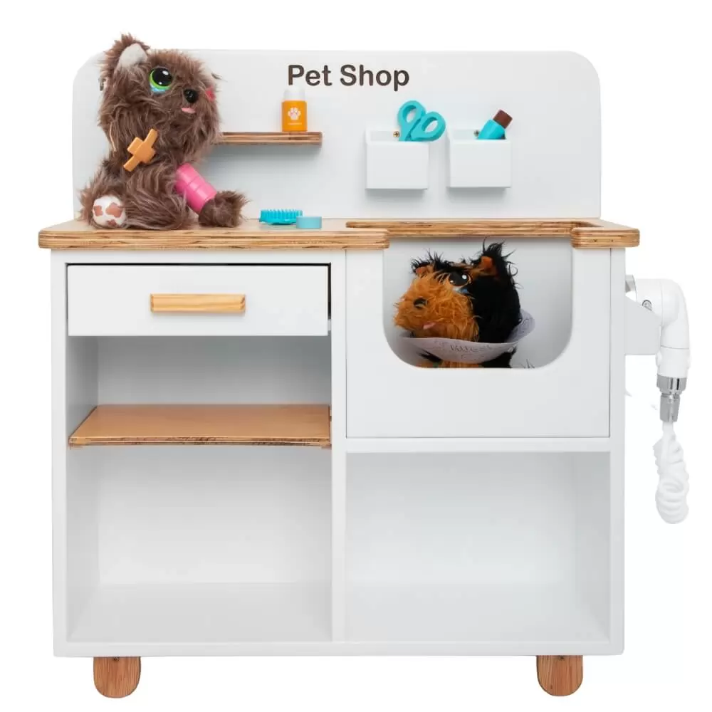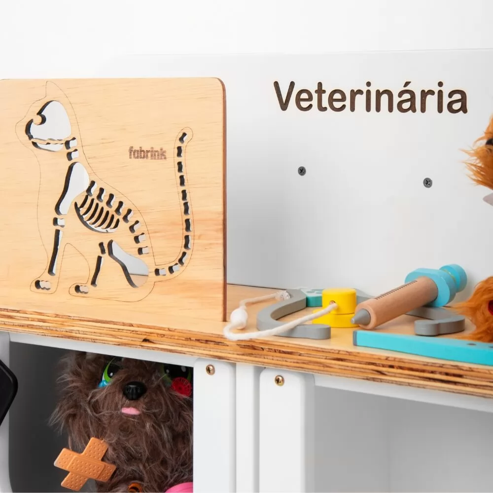 Mini Pet Shop Infantil de Madeira Branco Fabrink - Cuidados e Diversão