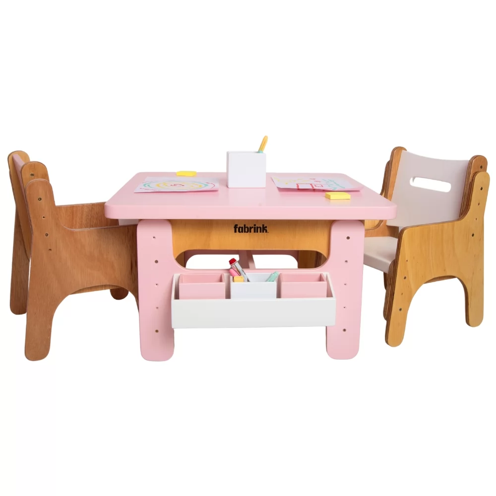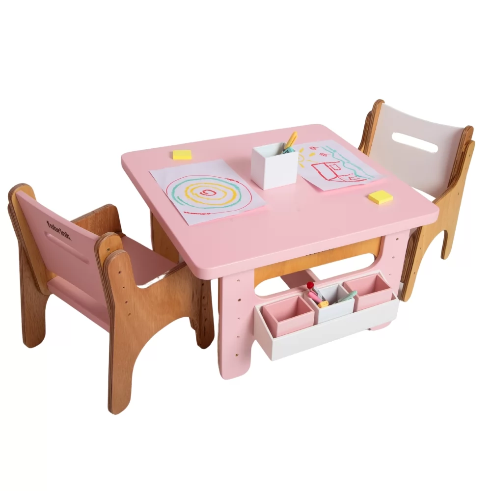 A Mesa Infantil com Duas Cadeiras da Fabrink não é apenas um conjunto de mobília, é uma ferramenta que promove o desenvolvimento, a segurança e a diversão das crianças, integrando-se perfeitamente a qualquer ambiente infantil.