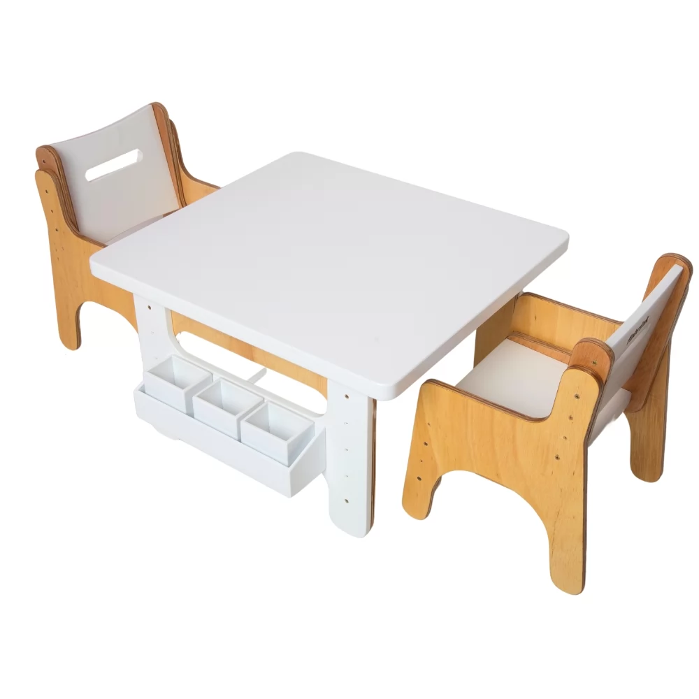 Jogo De Mesa Infantil Com Duas Cadeiras Brancas De Madeira Fabrink